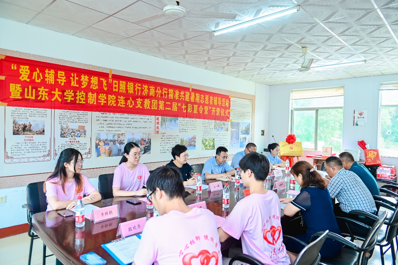 近日,MG冰球突破官网网站MG冰球突破官网网站连心支教调研团第二届“七彩夏令营”开营仪式于黑龙峪村委会顺利举行。港沟街道黑龙峪村党支部书记李忠新、港沟街道办事处副主任马炳芬出席,连心支教团全体参营成员参加开营仪式。