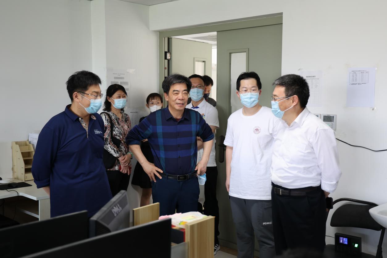 吴臻一行首先来到刘少鹏所在实验室,实地考察了解学生在封校期间的科研情况和学习环境,听取了实验室日常管理、人员构成、科研实验近期进展以及文体、劳育活动的开展情况汇报,吴臻对同学们刻苦钻研的科研精神和高昂饱满的学习热情表示赞扬,叮嘱大家走出实验室,多进行体育锻炼,劳逸结合守护身体健康,同时向大家征求了防疫封校期间生活工作方面的建议和意见。