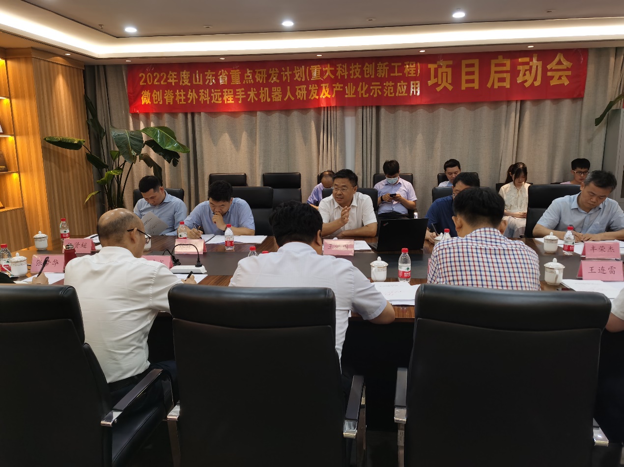 6月23日,2022年山东省重点研发计划(重大科技创新工程)“微创脊柱外科远程手术机器人研发及产业化示范应用”项目启动会在济南召开。